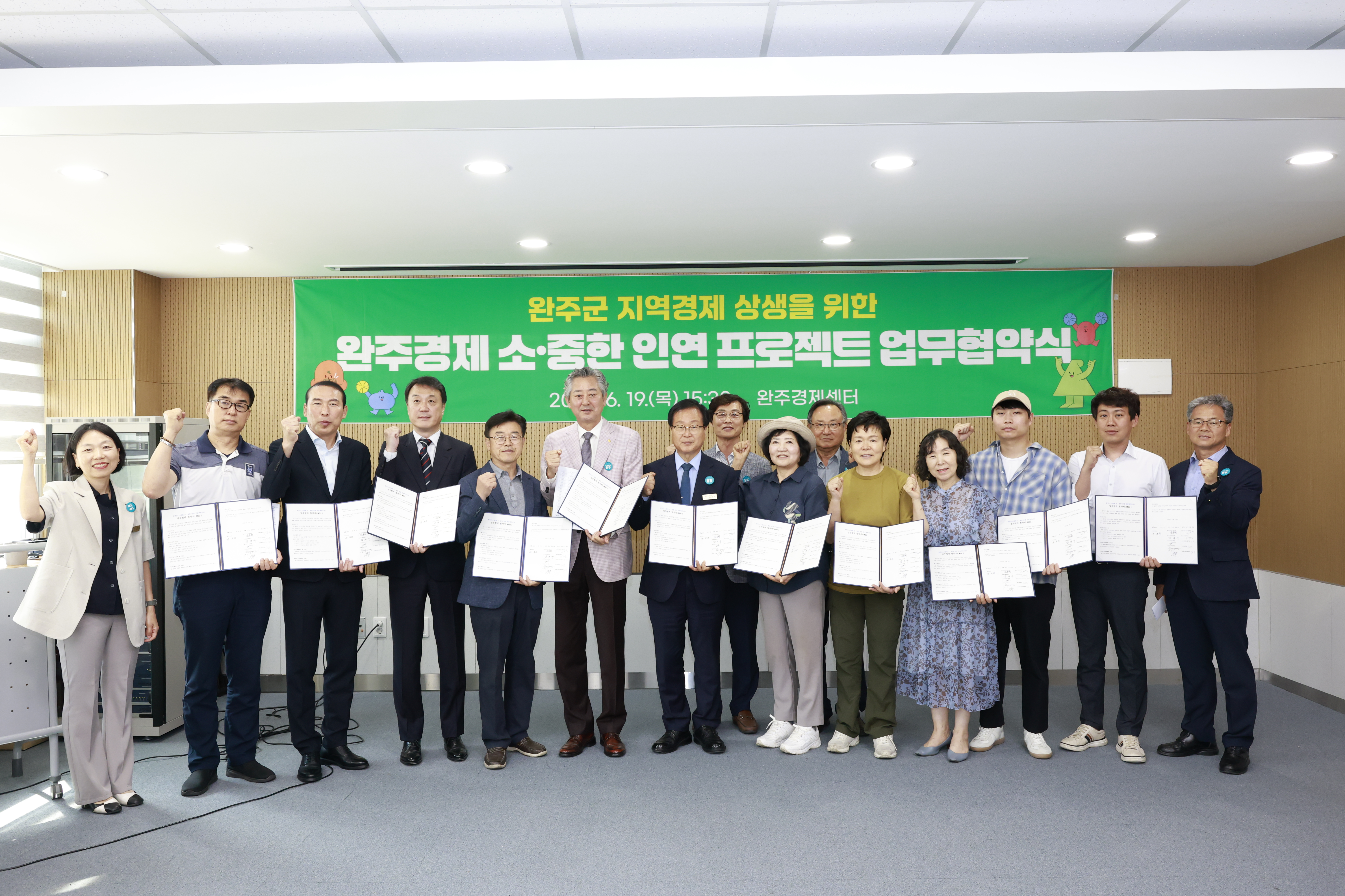 19일 완주군은 60여 개소의 소상공인 대표와 기업 및 단체 간 협약식을 갖고, 완주군 로컬 제품의 정기적 소비와 판로 지원에 뜻을 모았다.
