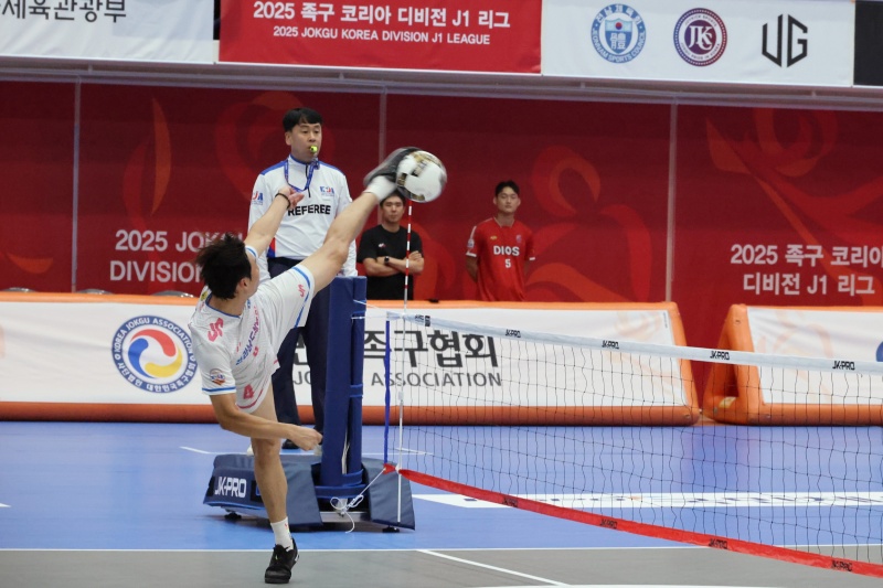[무주=뉴전북] 국내 최고 권위 리그인 '2025 족구코리아 디비전 J1리그'가 지난 5일 무주국민체육센터에서 대장정의 막을 올렸다.