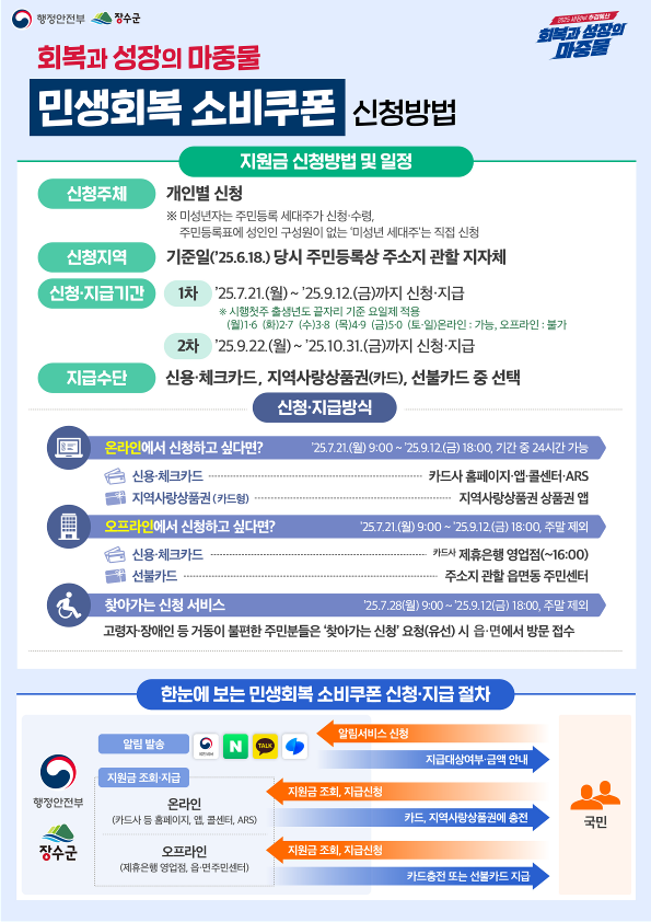 [장수=뉴전북]장수군은 오는 21일부터 전 군민에게 소비 진작과 소상공인 매출 확대를 위한 민생경제 회복 정책으로 민생회복 소비쿠폰을 지급한다고 밝혔다.