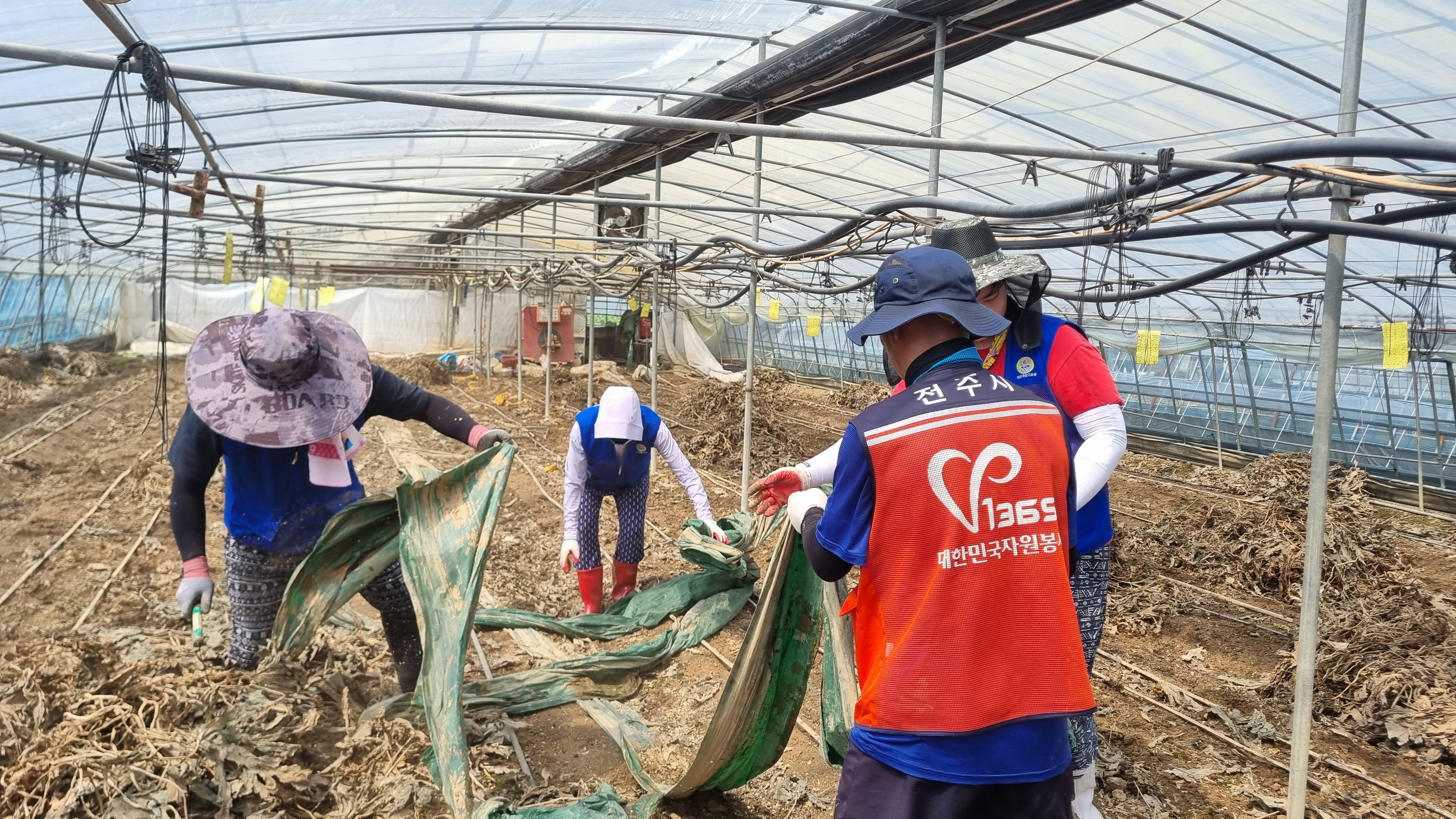 사단법인 전주시자원봉사센터(이사장 최이천)는 24일 전주지역 자원봉사자 20여 명이 광산구 침수 농가의 비닐하우스 철거 및 복구를 위한 봉사를 실시했다고 밝혔다.