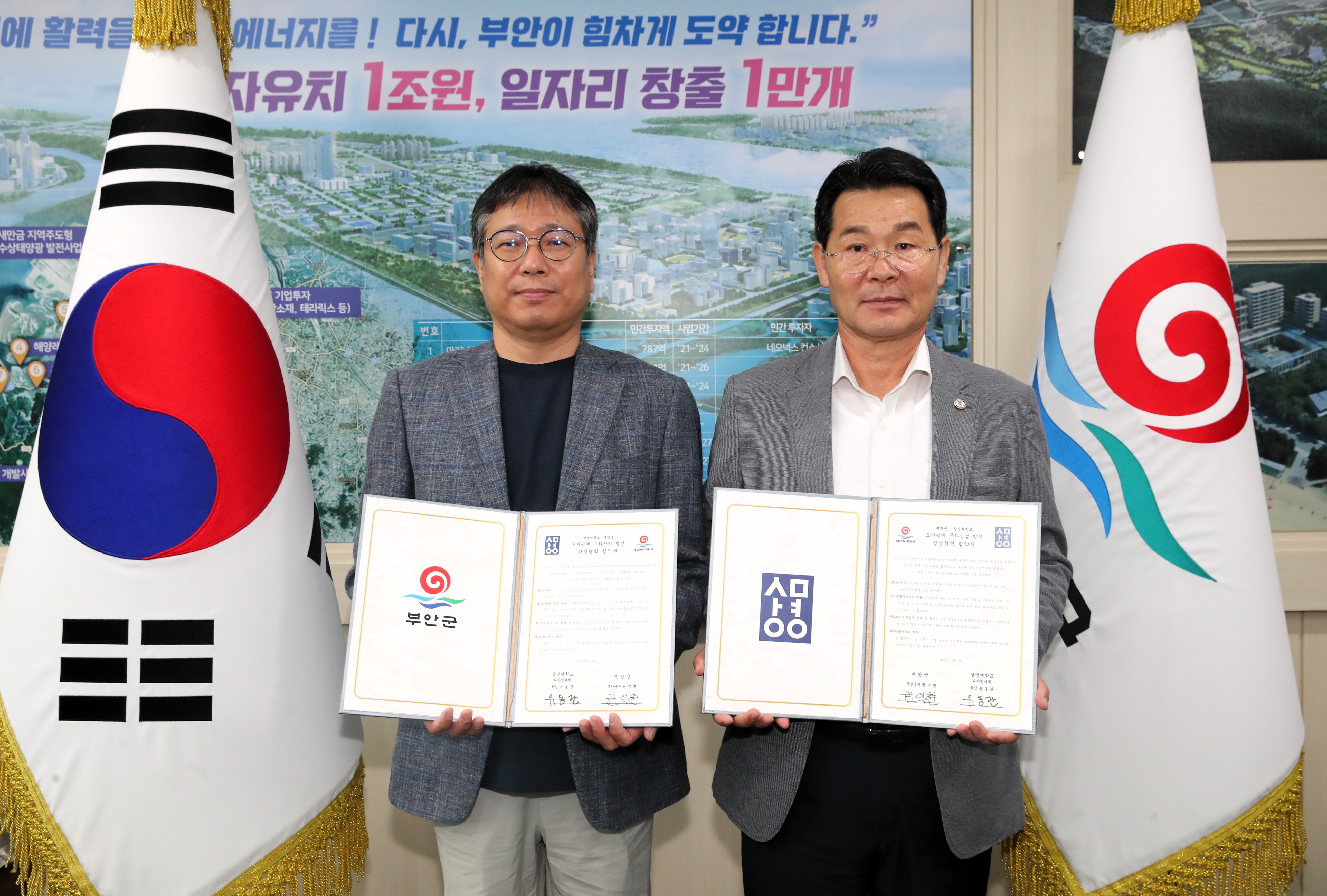 이날 협약식에는 권익현 부안군수와 유동관 디자인대학 학장 및 세라믹디자인과 홍엽중 학과장, 송준규 교수 등 상명대학교 관계자들이 참석해 양 기관의 지속적인 교류와 협력을 약속했다.