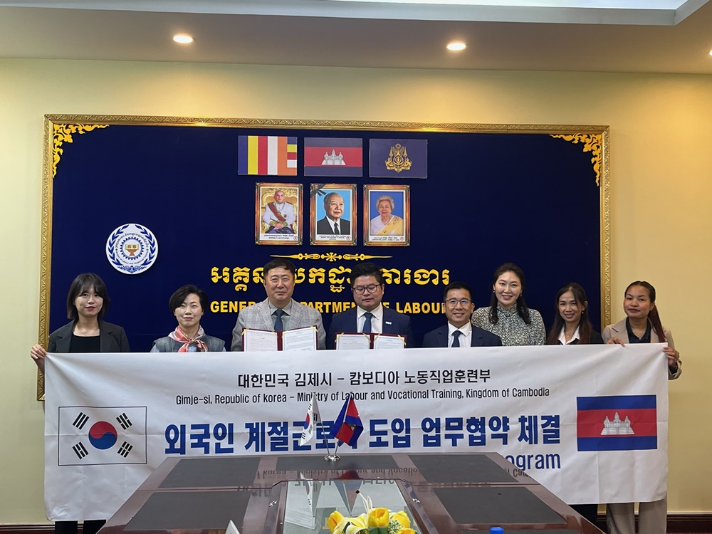 [김제=뉴전북]김제시(시장 정성주)는 농촌 지역의 인력난 해소와 안정적인 농업 인력 수급 기반 마련을 위해 지난 26일부터 30일까지 라오스 노동사회복지부와 캄보디아 노동직업훈련부를 방문해 외국인 계절근로자 도입 업무협약(MOU)을 체결했다고 밝혔다.