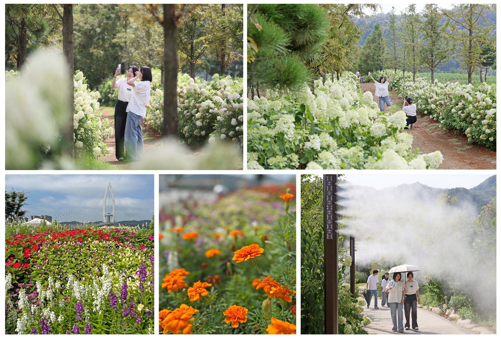 - 안젤로니아‧메리골드 등 여름꽃 식재, 라임라이트 수국 만개 등 여름꽃 향연,쿨링포그 12개소 설치 시원한 여름 산책, 판매장‧카페 등 편의시설 인기