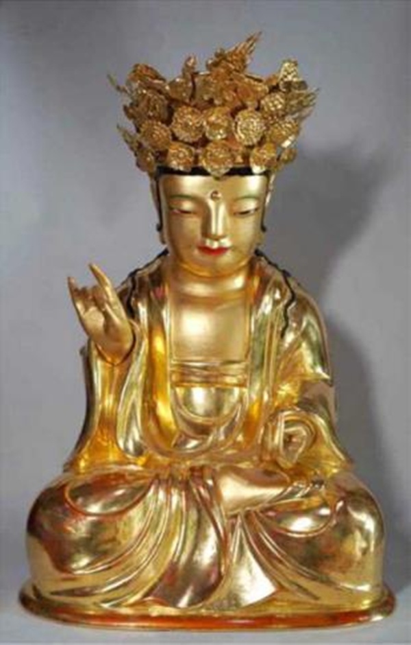 정읍 상동 미륵사에 소재한 ‘목조대세지보살좌상·복장유물’은 높이 57.2cm, 슬폭 35cm의 목조상으로, 복장유물은 후령통 일괄 6점, 다라니 14점, 경전 2점으로 구성돼 있다.