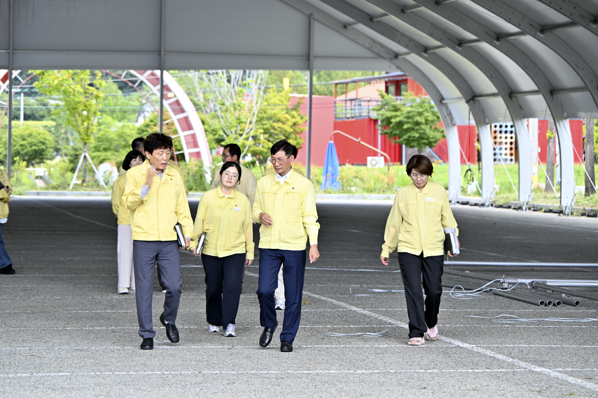 최 군수는 사과마당과 한우마당, 무대, 체험장, 편의시설 등 주요 공간을 순회하며 안전관리, 동선 확보, 응급 대응 체계 등 현장에서 발생할 수 있는 다양한 상황에 대비한 준비 상태를 꼼꼼히 점검했다.