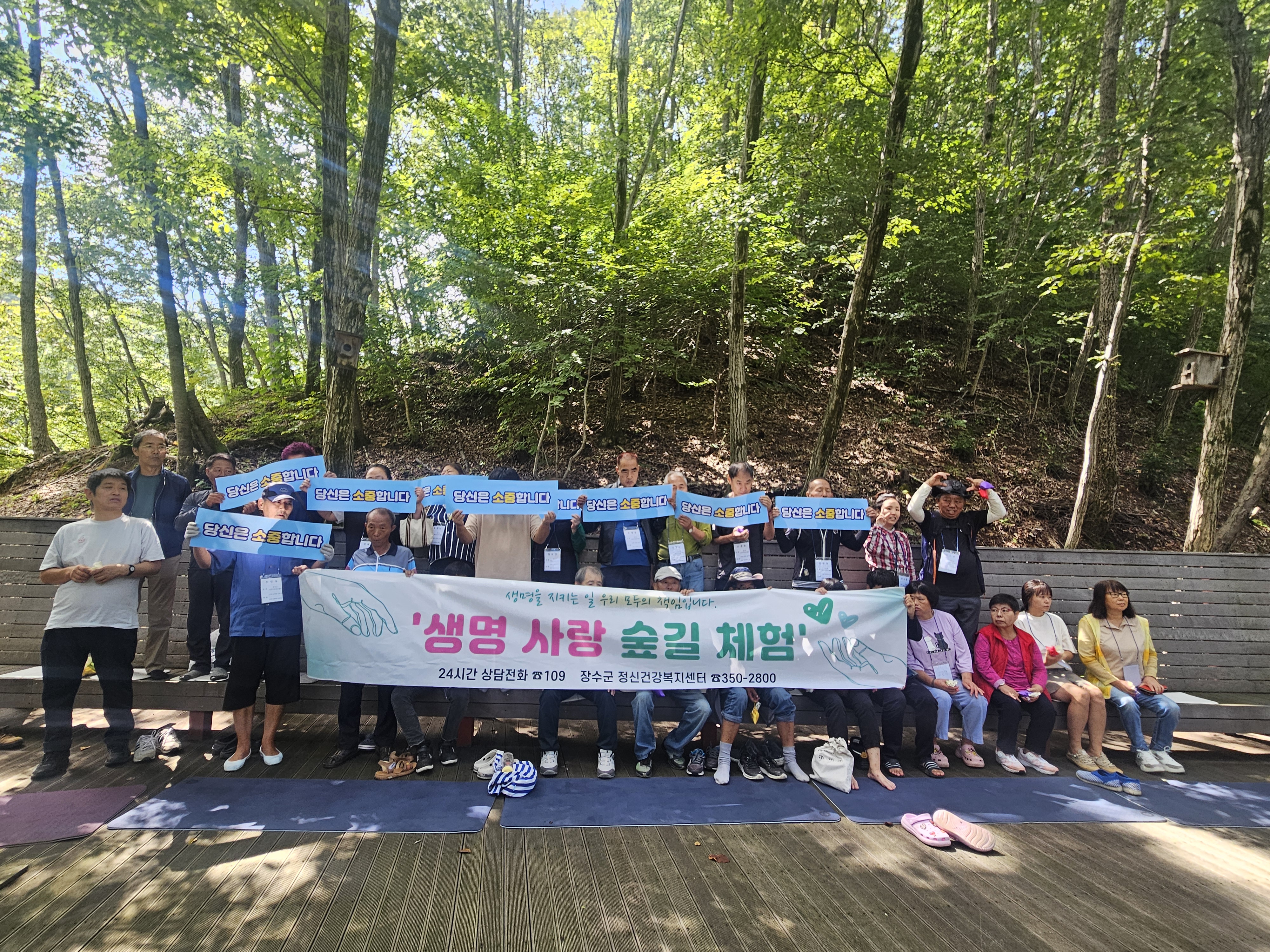[장수=뉴전북] 장수군은 세계 자살예방의 날을 맞아 천천면 치유의 숲에서 ‘생명사랑 숲길 걷기’ 체험 프로그램을 운영했다고 15일 밝혔다.