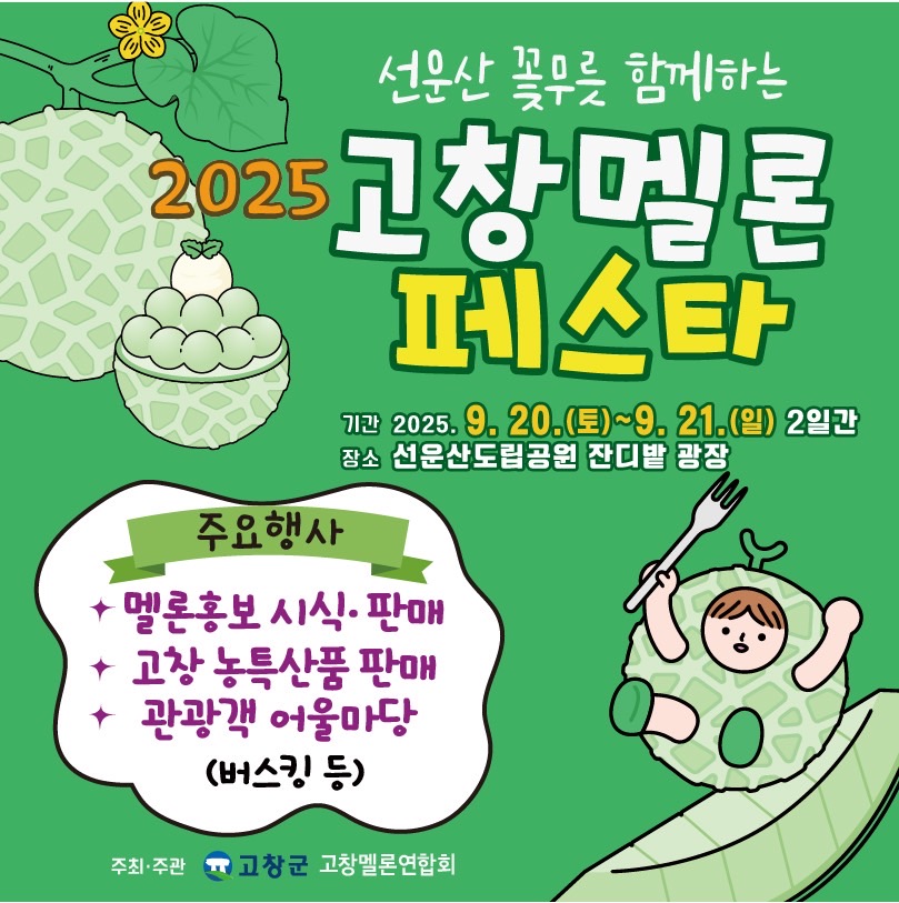 [고창=뉴전북] 고창군이 선운산 꽃무릇과 함께하는 ‘2025년 고창 멜론 페스타’가 오는 20~21일 선운산도립공원 잔디밭 광장에서 열린다고 17일 밝혔다.