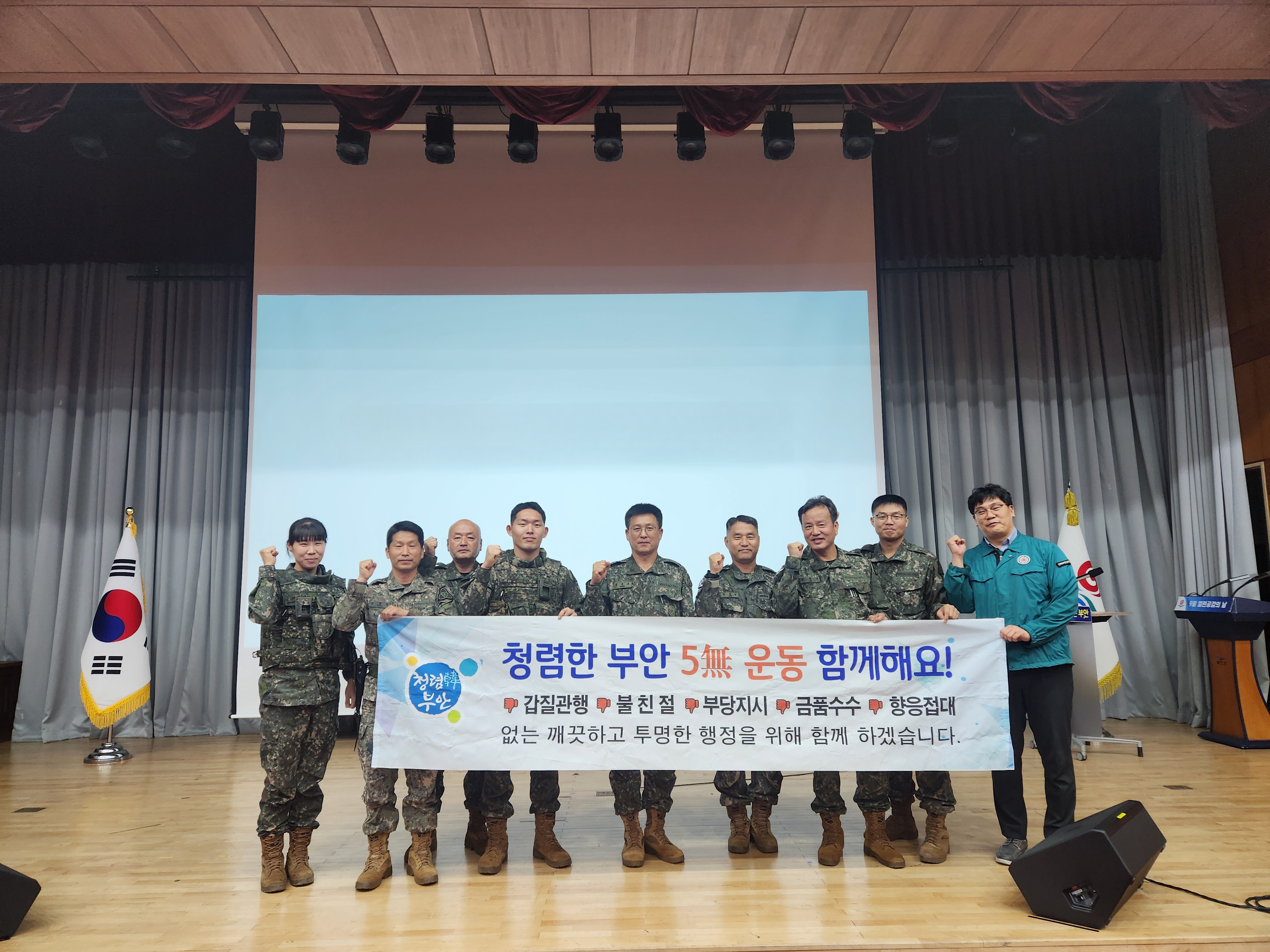 부안군 안전총괄과와 군부대 합동 청렴 캠페인 5무 운동 전개