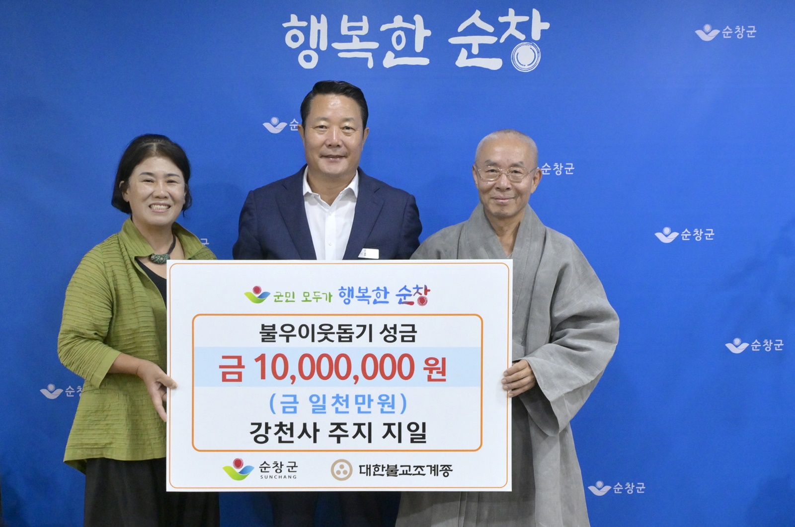 최영일 군수는 “강천사의 따뜻한 나눔 정신에 깊이 감사드린다”면서 “기탁해 주신 성금은 저소득 아동과 문화소외 계층을 위해 소중히 사용하겠다”라고 말했다.