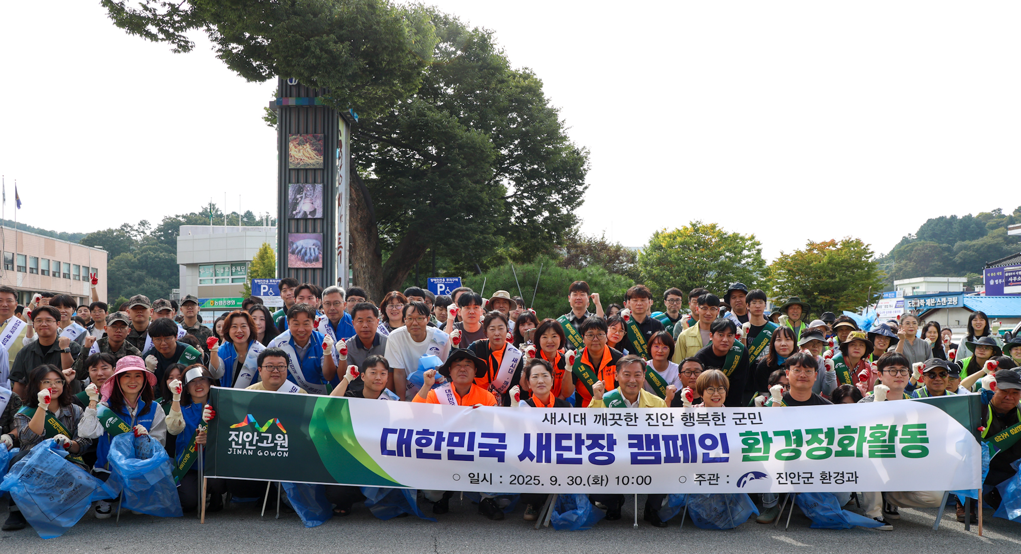 [진안=뉴전북] 진안군은 9월 30일 군청 앞 광장에서 기관단체와 지역주민 250여명이 참석한 가운데 ‘2025년 대한민국 새단장 캠페인’ 발대식을 개최하고 진안읍 전역에서 대대적인 대청소를 실시했다.