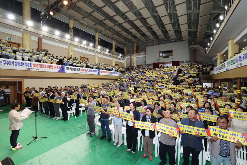 ¹«ÁÖ±º¹Î 1000¿© ¸íÀÌ 1ÀÏ ¹«ÁÖ¿¹Ã¼¹®È°ü ´ë°´ç¿¡¼ ³ó¾îÃÌ ±âº»¼Òµæ ½Ã¹ü»ç¾÷ ¼±Á¤À» Ã˱¸ÇÏ´Â ¹ü±º¹Î °áÀÇ´ëȸ¸¦ °³ÃÖÇß´Ù. |