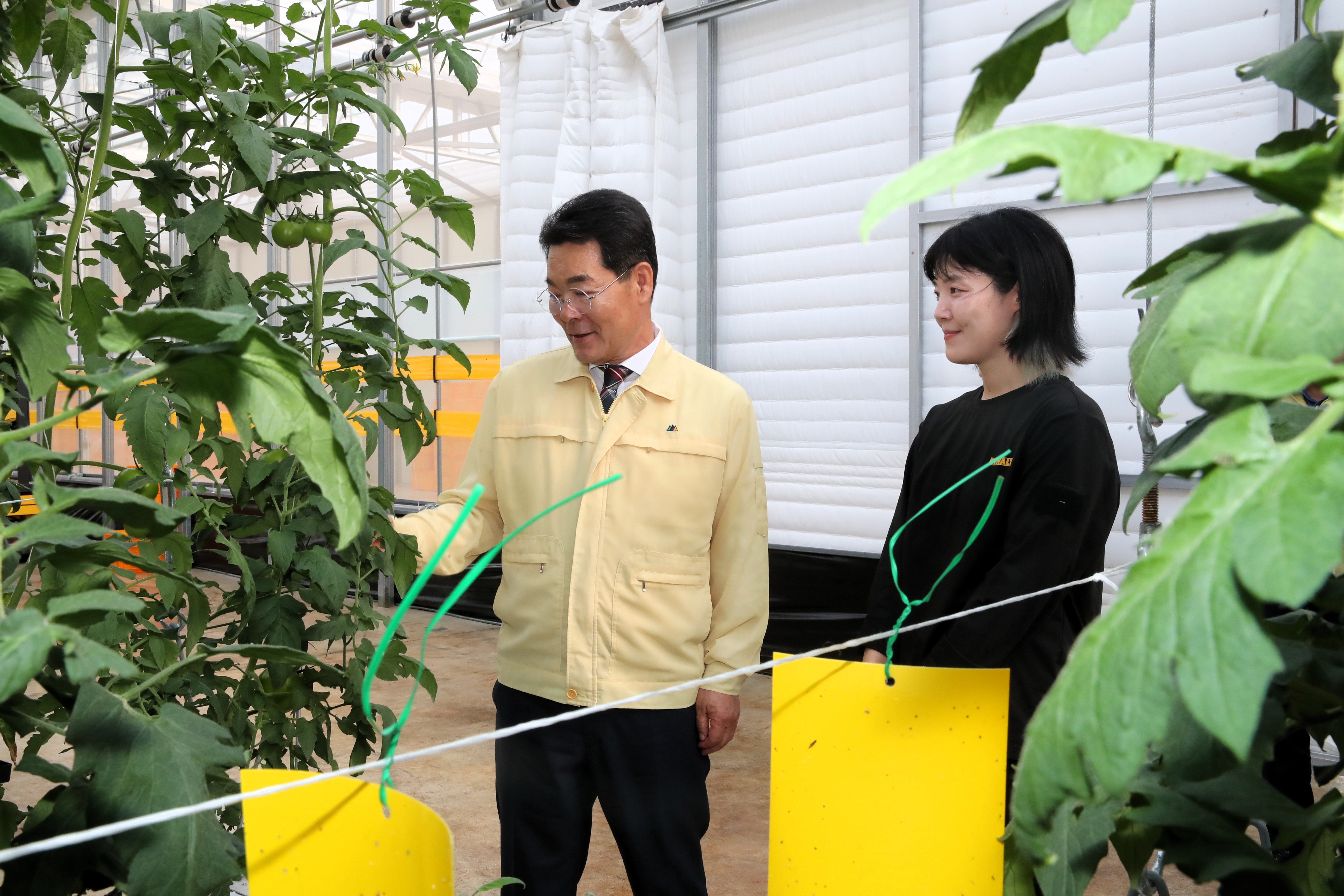 두 번째로 방문한 김윤경 농가는 군의 지원을 받아 지난해 연동 하우스를 설치하고 올해 양액재배 시설을 설치하였다. 이를 기반으로 생산성을 향상하고, 데이터 기반의 생육 관리로 연중 고품질 토마토를 출하할 계획이다. 특히 청년 농업인의 도전 정신과 창의적인 아이디어가 더해져 지역 농업 경쟁력 제고에 큰 역할을 할 것으로 기대하고 있다.