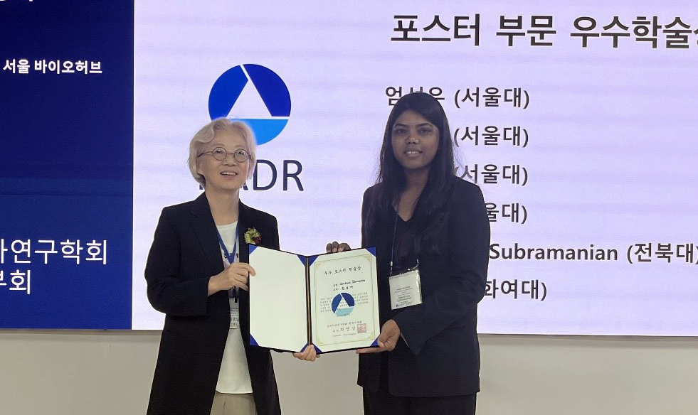 키르타나 박사과정생은 최근 서울바이오허브에서 열린 제44차 국제치과연구학회 한국지부회(KADR, Korean Division of the International Association for Dental Research) 학술경연에서 우수포스터 학술상을 수상했다.