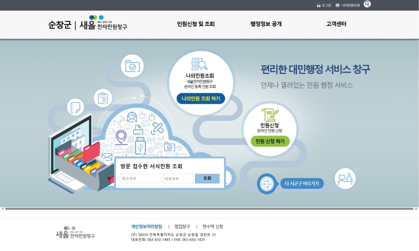 새올전자민원창구는 순창군청 새올전자민원창구를 검색해 이용할 수 있으며, 운영은 국민신문고 복구 시점까지 지속될 예정이다.