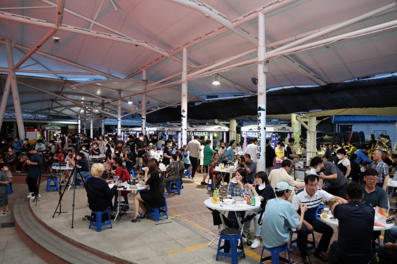 야시장에는 간식 및 먹거리 부스가 운영되며, 수공예품 체험 행사도 열린다.