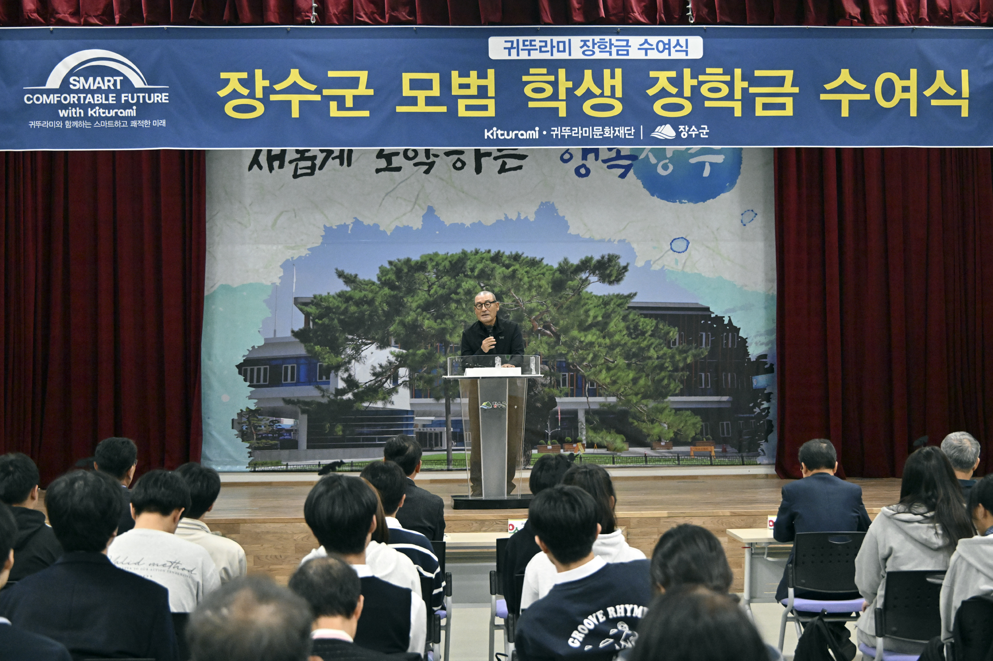 이번 행사는 귀뚜라미그룹과 장수군이 함께 지역의 우수한 학생들을 격려하고 미래 인재로 성장할 수 있도록 지원하기 위해 마련된 자리로, 관내 중·고등학생 50명에게 총 5천만 원의 장학금과 장학증서가 전달됐다.