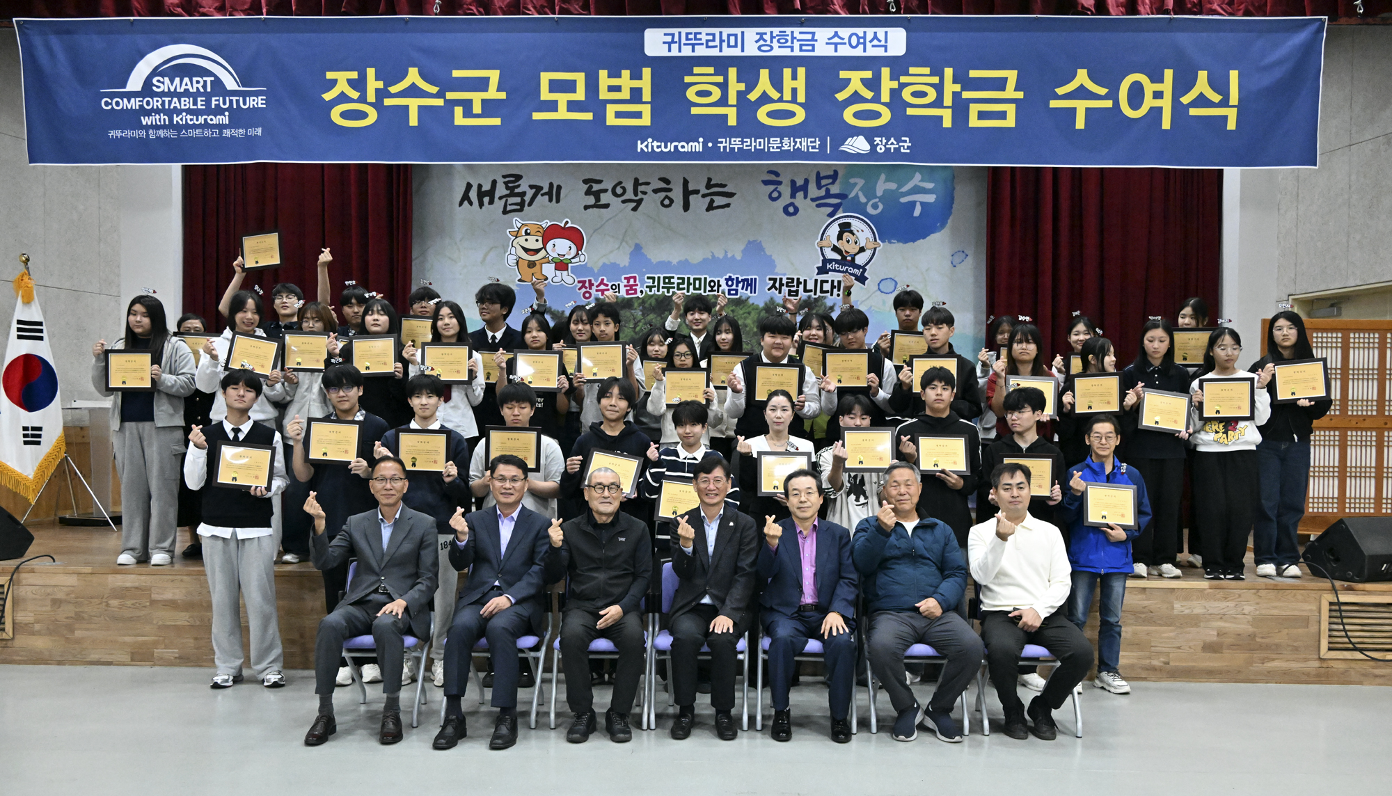 [장수=뉴전북] 장수군은 24일 군청 군민회관에서 ‘2025년 귀뚜라미문화재단 장수군 모범학생 장학금 수여식을 개최했다고 밝혔다.