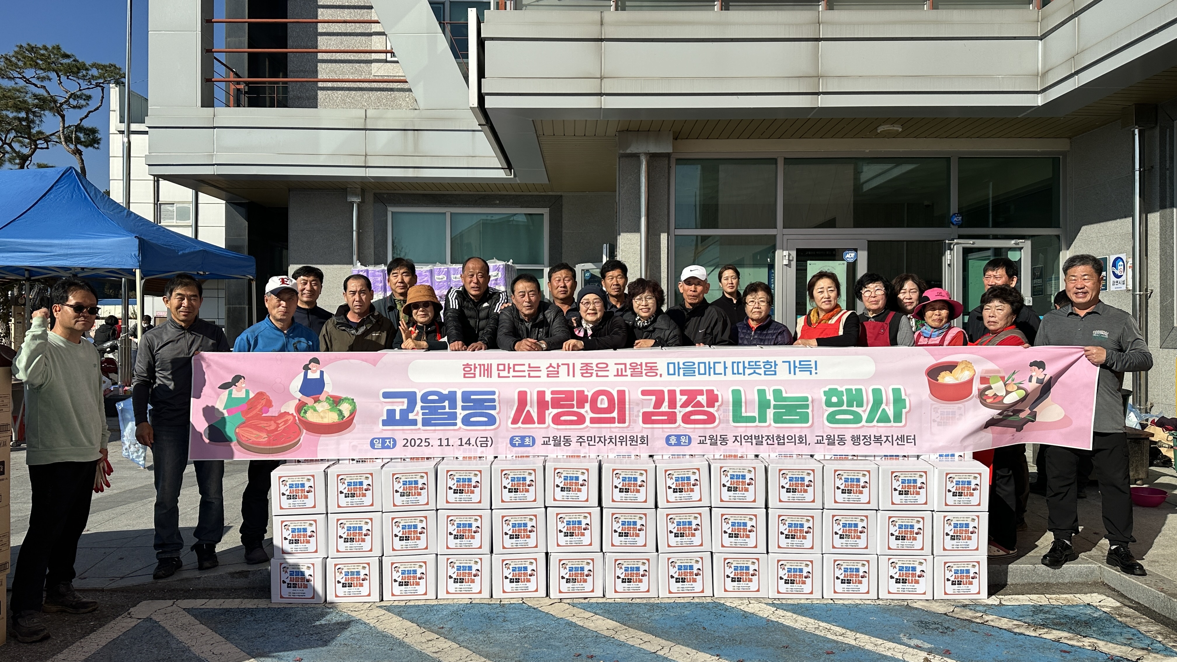 서창배 주민자치위원장은 “김장 나눔 사업은 배추 식재부터 김장까지 모든 과정 속에 노고와 사랑이 담긴 의미있는 사업이다.”며 “지역사회단체가 하나되어 따뜻한 교월동을 만드는 뜻깊은 자리에 함께할 수 있어 좋았다.”고 말했다.