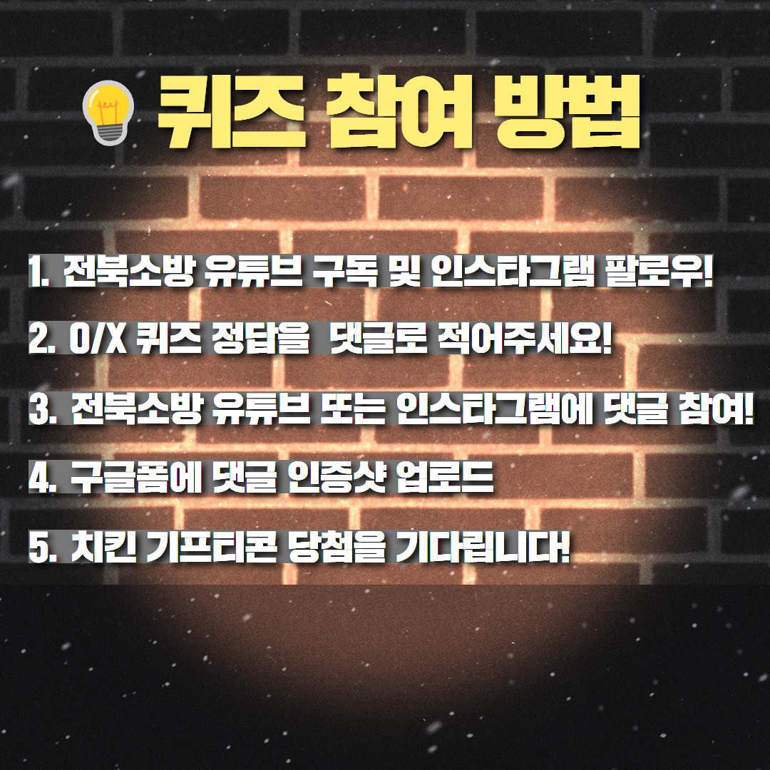 참여 기간은 11월 17일부터 23일까지 7일간이며, 전북특별자치도소방본부 공식 유튜브와 인스타그램에서 카드뉴스를 확인하고 댓글로 참여할 수 있다. 당첨자 선정을 위한 개인정보 수집 동의는 별도의 구글폼으로 받는다.