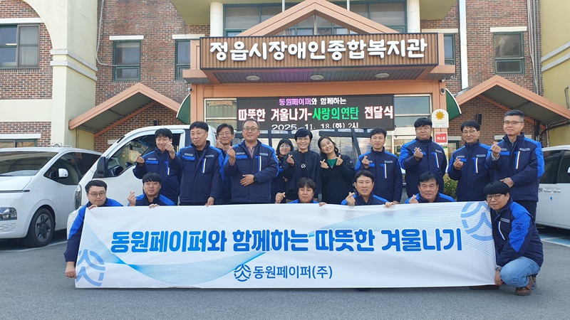 한편, 정읍시 영파동에 소재한 동원페이퍼는 지난 2016년 김장김치 후원을 시작으로 지역사회 공헌 활동을 꾸준히 이어오고 있다. 특히 지난해에 이어 올해도 난방 취약 장애인 가정을 대상으로 사랑의 연탄 나눔 봉사를 실시하는 등 지역과 함께 성장하는 기업이라는 가치를 지속적으로 실천하고 있다.