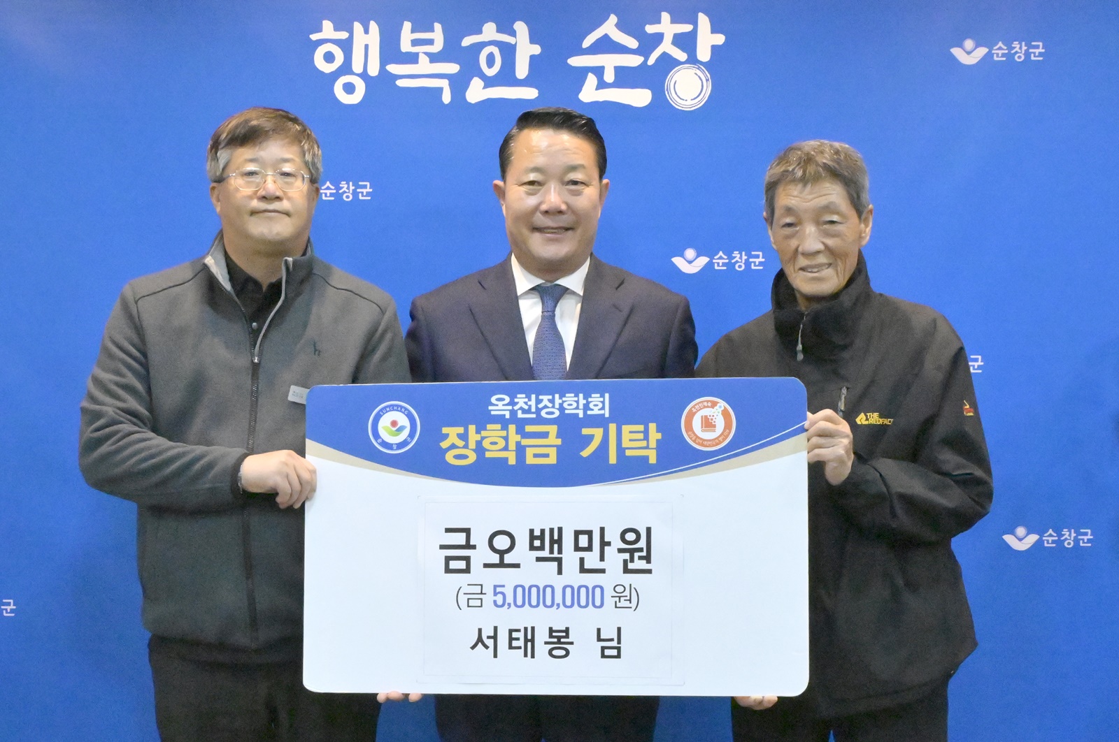 [순창=뉴전북] 전북 순창군이 지난 26일 순창읍에 거주하는 서태봉 씨가 지역인재육성에 써달라며 장학금 500만 원을 (재)순창군옥천장학회(이사장 최영일 순창군수)에 기탁했다고 밝혔다.
