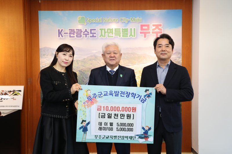 [»çȸ=´ºÀüºÏ] ³ó¾÷ȸ»ç¹ýÀÎ µ¥ÀÌÀ£(ÁÖ)¿Í ·¡¹ÌF&B´Â 9ÀÏ (Àç)¹«ÁÖ±º±³À°¹ßÀüÀåÇÐÀç´Ü¿¡ ÀåÇÐ±Ý °¢ 500¸¸ ¿ø¾¿À» ±âŹÇß´Ù.