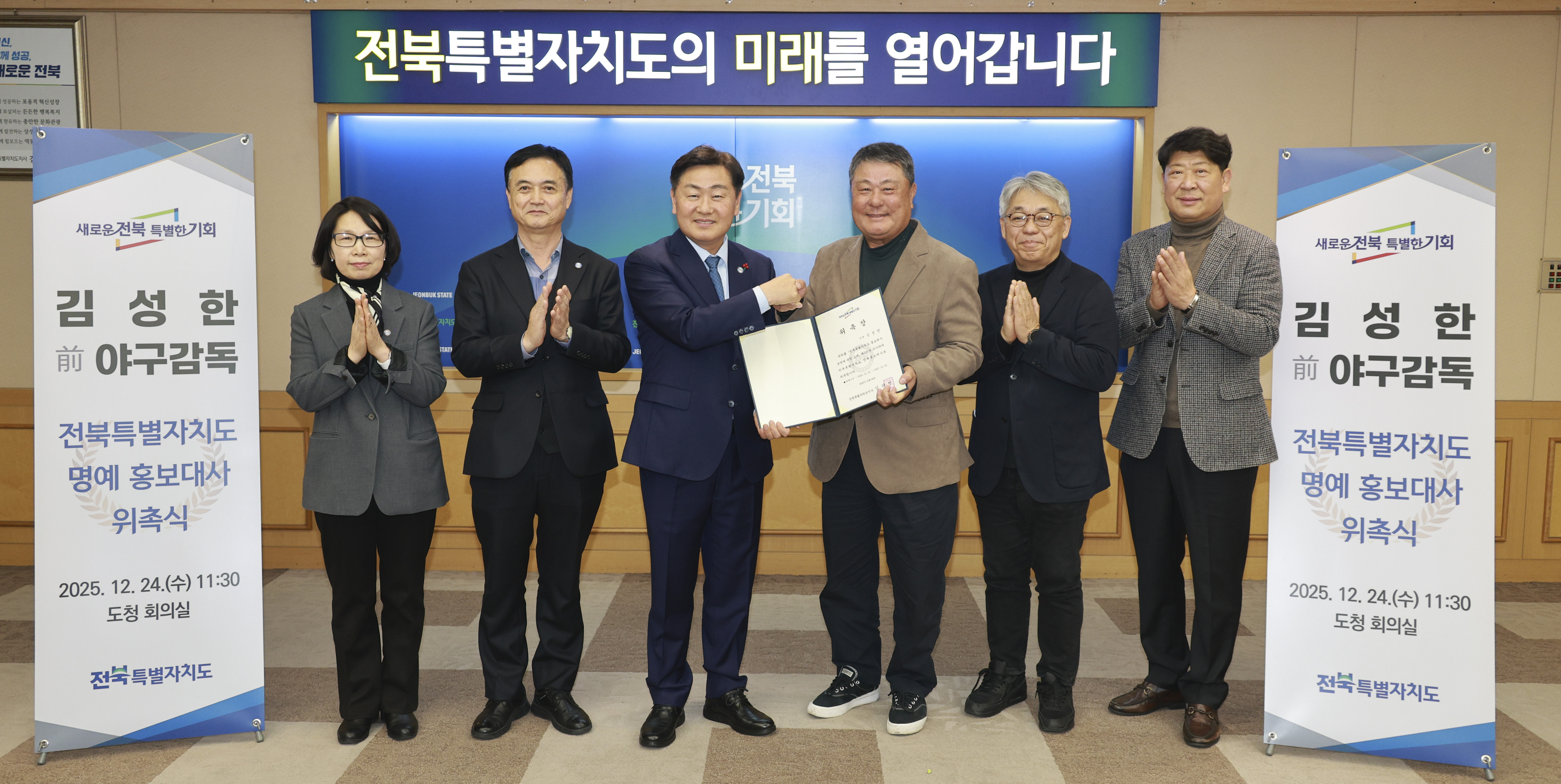 김성한 전 감독은 고향인 전북의 명예 홍보대사로 위촉돼 매우 뜻깊게 생각한다라며 스포츠를 통해 쌓아온 경험과 도전의 가치를 바탕으로 전북특별자치도의 매력과 가능성을 널리 알리는 데 힘을 보태겠다고 말했다.