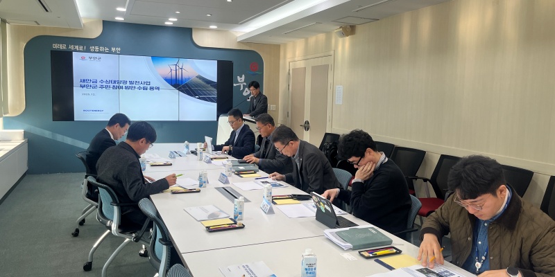 [경제=뉴전북] 부안군이 지난 26일 부안군청에서 새만금 수상태양광 부안군 주민 참여 방안 수립 용역 최종 보고회를 개최했다.