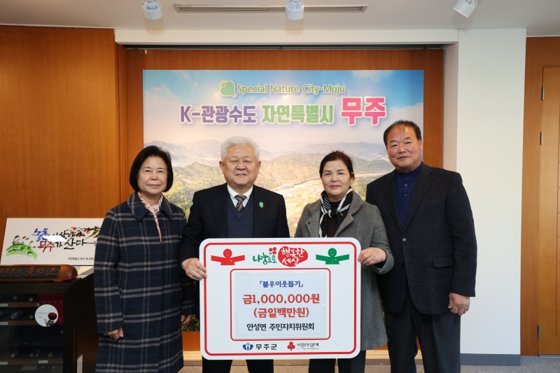 | ¹«ÁÖ±º ¾È¼º¸éÁÖ¹ÎÀÚÄ¡À§¿øÈ¸¿¡¼ Áö³ 30ÀÏ ÀÌ¿ôµ½±â ¼º±Ý 100¸¸ ¿øÀ» ¹«ÁÖ±º¿¡ ±âŹÇß´Ù. |