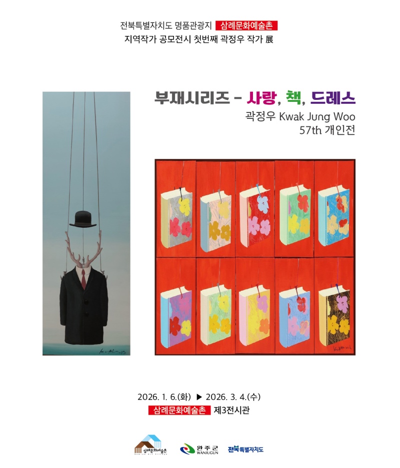 [¹®È=´ºÀüºÏ] ¿ÏÁÖ±ºÀÌ ÀüºÏƯº°ÀÚÄ¡µµ ¸íǰ °ü±¤ÁöÀÎ »ï·Ê¹®È¿¹¼úÃÌ¿¡¼ Áö¿ªÀÛ°¡ °ø¸ðÀüÀ¸·Î °ûÁ¤¿ì ÀÛ°¡ÀÇ ¡®ºÎÀç½Ã¸®Áî – »ç¶û, Ã¥, µå·¹½º¡¯ Àü½Ã¸¦ ½ÃÀÛÇß´Ù.