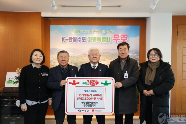 민주평화통일자문회의 무주군협의회가 1350만 원 상당의 온열 찜질기 300개를 기탁해 귀감이 되고 있다.[무주=뉴전북] 민주평화통일자문회의 무주군협의회는 지난 22일 무주군에 어려운 이웃들을 위한 온열 찜질기 300개(1350여만 원 상당)를 기탁했다.