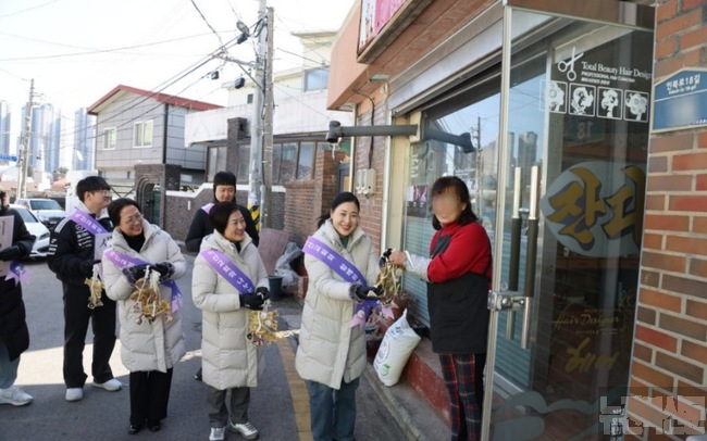 이날 신천지 익산교회 교인들은 손수 준비한 복조리와 잡곡, 액막이 명태 등으로 구성된 선물 세트를 들고 한 집 한 집 방문하며 새해 덕담을 나눴다.