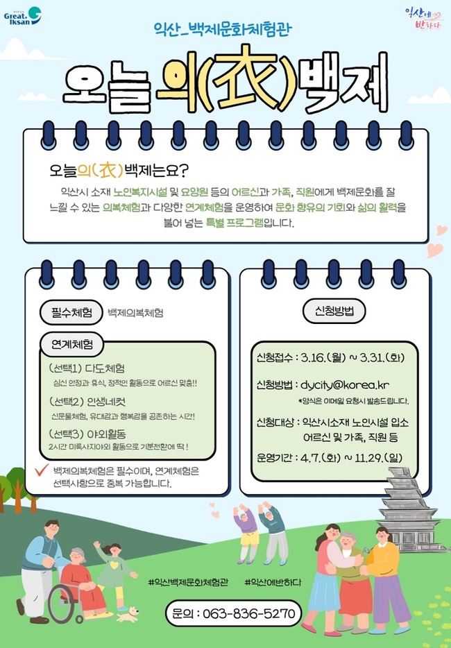 '오늘의(衣) 백제'는 고령층의 문화 향유 기회 확대를 위해 기획된 체험 프로그램이다. 이는 백제 역사와 문화를 쉽고 즐겁게 접할 수 있도록 마련됐다.