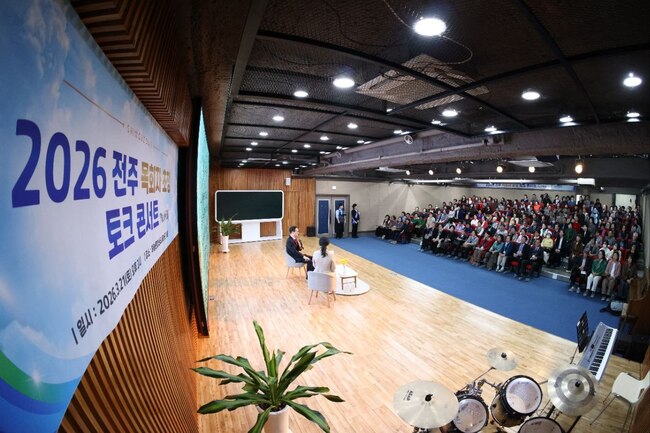 [사회=뉴전북] 신천지예수교 증거장막성전 도마지파 전주교회(담임 이용우·이하 신천지 전주교회)가 지난 21일 전주 하늘문화센터 홍보관에서 지역 목회자와 시민 100여 명을 초청해 ‘2026 목회자 초청 토크 콘서트’를 개최했다.