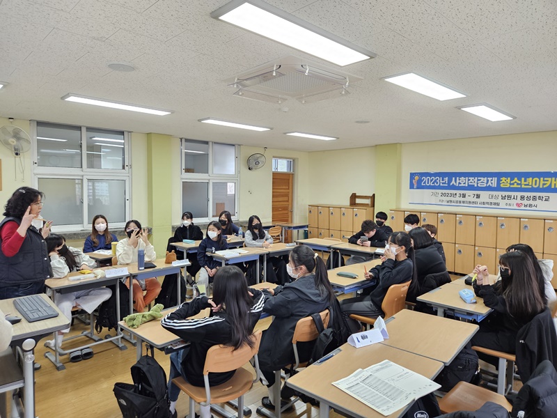 [남원=뉴전북] 남원시가 주최하고 남원시공동체지원센터가 주관하는 2023년 사회적경제 청소년 아카데미가 용성중, 남원중, 금지중에서 자유학기제 프로젝트 특강으로 진행된다.