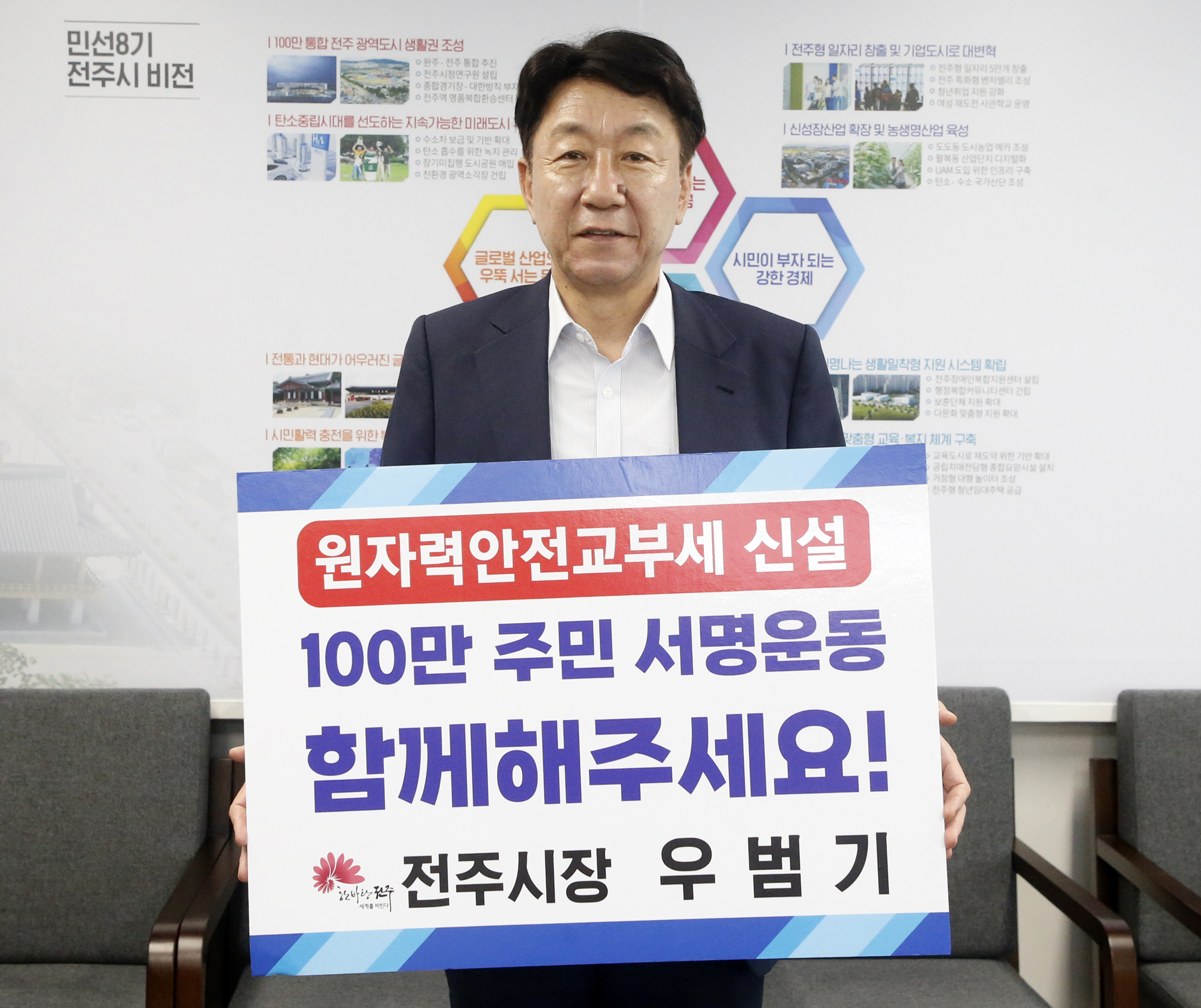 [전주=뉴전북] 우범기 전주시장이 원자력 안전교부세 신설을 촉구하는 100만 서명운동에 동참했다.