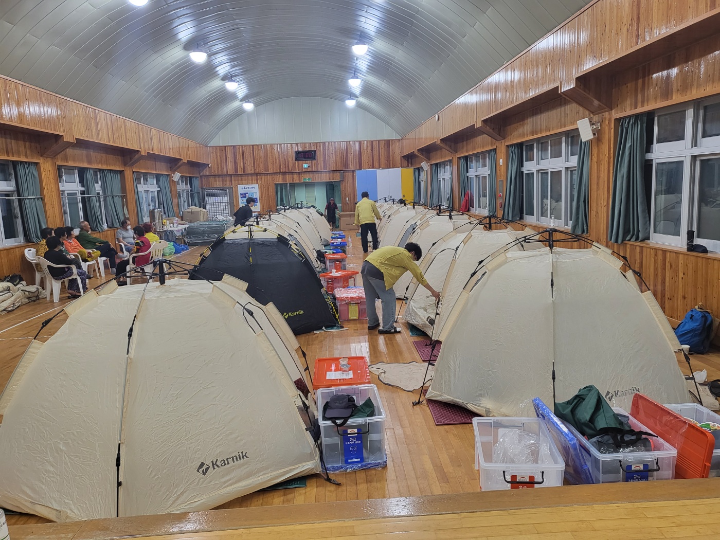 우선 긴급하게 임시주거시설 마련에 초등학교경로당 등에서는 적극적으로 장소를 지원했으며 개인승용차 30대가 투입돼 재해구호물자 배분과 긴급이송을 도왔다.