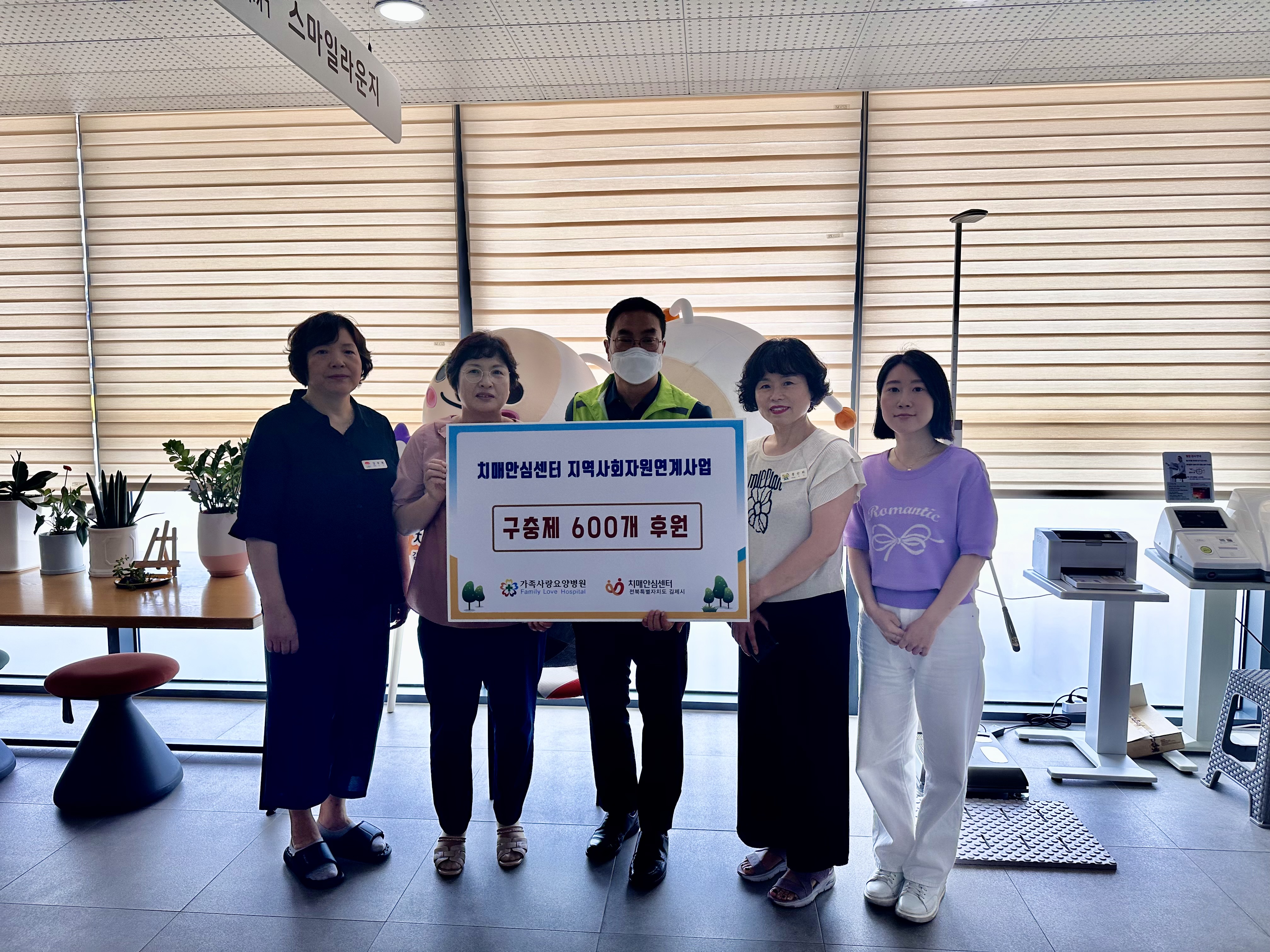 가족사랑요양병원 관계자는“구충제 후원을 통해 치매 어르신과 가족분들에게 따뜻한 마음을 전달할 수 있어 기쁘다”며 “앞으로도 관내 치매 어르신들에 대한 나눔과 관심을 지속해서 이어가겠다”고 전했다.