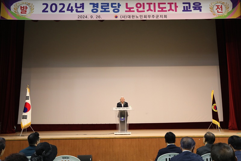 [무주=뉴전북] 무주군 경로당 노인지도자 교육이 지난 26일 무주예체문화관 다목적홀에서 진행됐다. 이날 행사는 대한노인회 무주군지회가 경로당 활성화 사업의 일환으로 주관한 것으로 황인홍 무주군수와 오광석 무주군의회 의장을 비롯한 의원들, 그리고 윤정훈 도의원과 지역 내 경로당 270곳의 회장 및 지회 임원 등 290명이 함께했다.