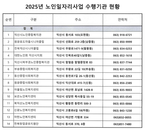 익산시, 2025년 노인일자리 참여자 1만여 명 모집