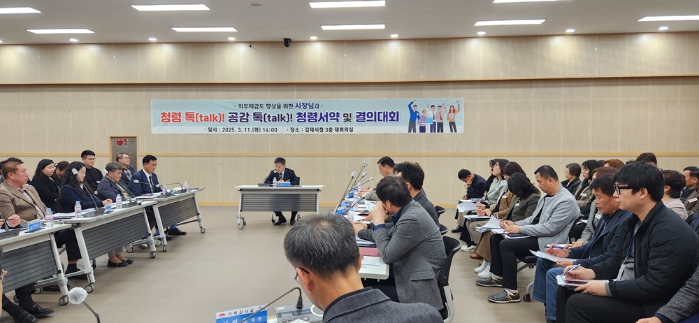 [김제=뉴전북] 김제시(시장 정성주)는 11일 시청 3층 대회의실에서 청렴 톡(Talk)! 공감 톡(Talk)!’을 개최해 김제시 종합청렴도 향상을 위한 심도 있는 논의를 진행했다고 밝혔다.
