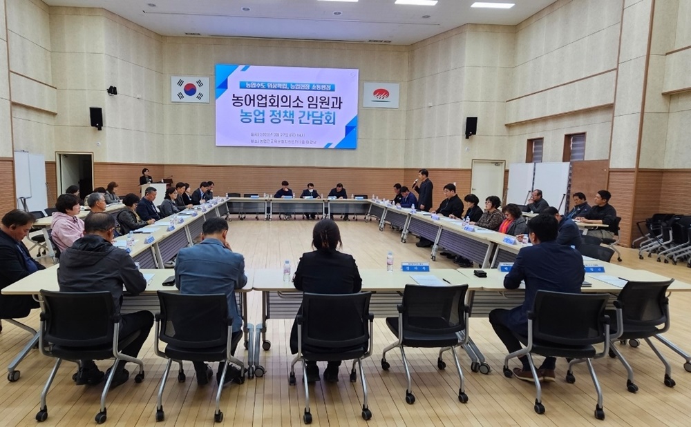 [김제=뉴전북] 김제시(시장 정성주)는 농업 현장의 소통 행정을 구현하고 수요자 중심의 농업정책 방향을 모색하기 위해 지난 27일 농업인교육문화지원센터 2층 대강당에서 농어업회의소 임원들과 농업정책 간담회를 가졌다고 밝혔다.