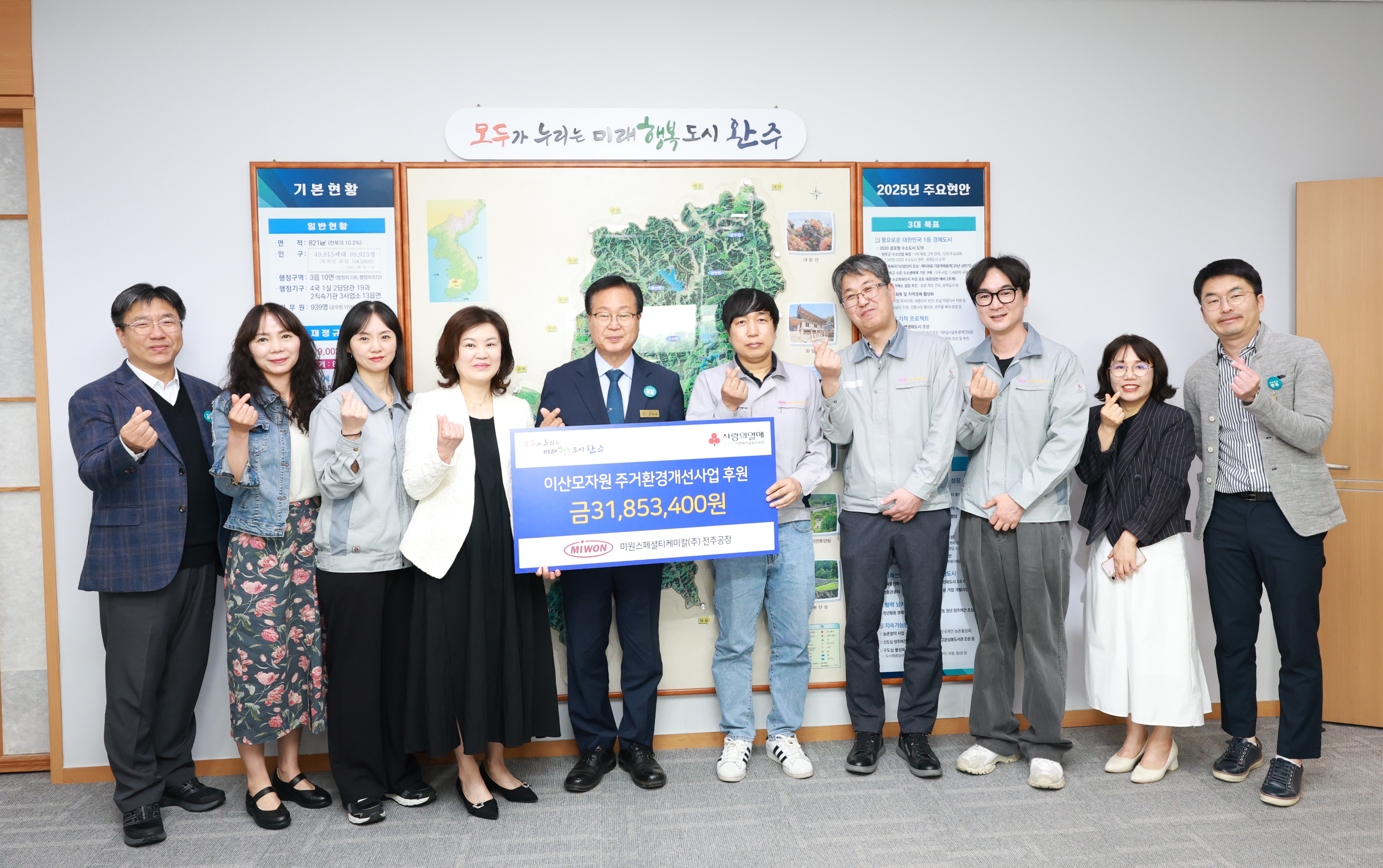 유희태 완주군수는 “어려운 시기에 도움의 손길을 내밀어 준 미원스페셜티케미칼(주) 전주공장 임직원에게 감사드린다”며 “모자원 생활인들이 더 좋은 환경에서 생활할 수 있도록 군에서도 지속적으로 관심을 갖고 지원 하겠다”고 말했다.