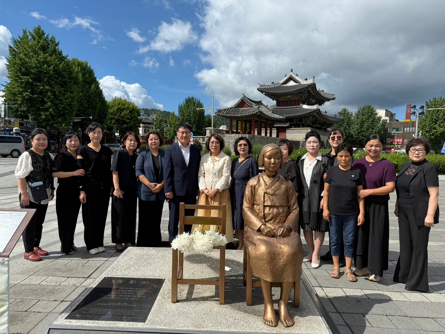 [사회=뉴전북] 전주시는 ‘제80회 광복절’을 앞둔 14일 풍남문광장 평화의 소녀상에서 위안부 피해자의 아픔을 위로하며 추모하는 헌화 행사를 열었다.