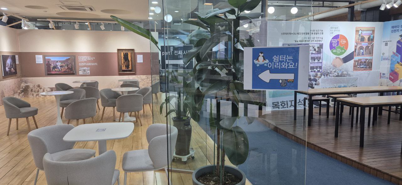 [신천지 전주교회 홍보관 쉼터 내부 쉼터 모습]