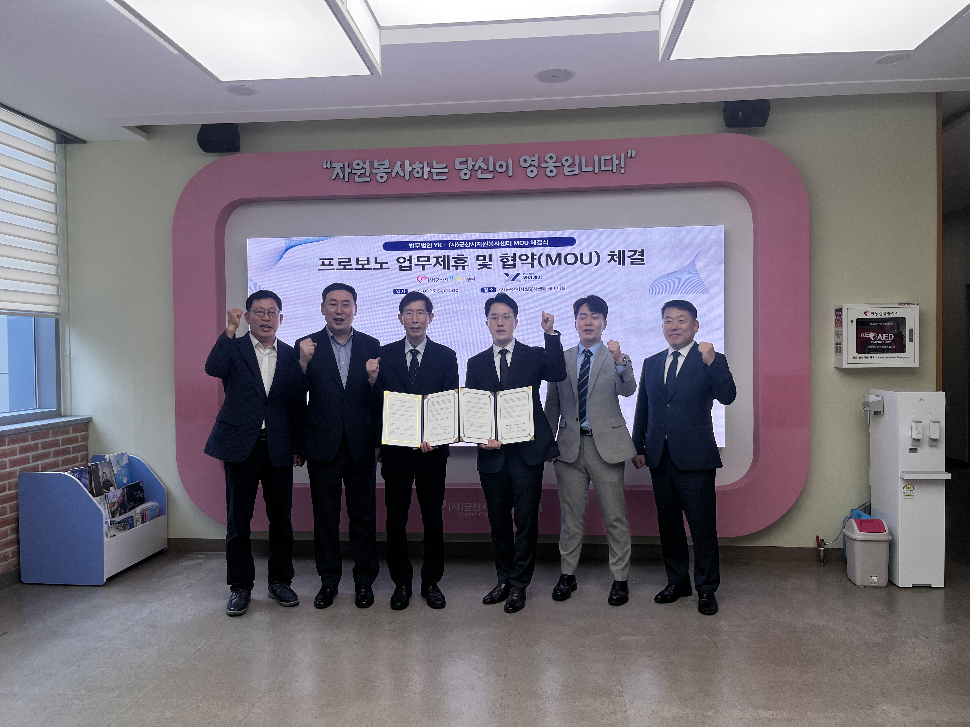 이번 협약을 통해 법무법인 YK는 군산시자원봉사센터의 사업 수행 과정에서 필요한 법률 자문을 무상으로 제공한다.