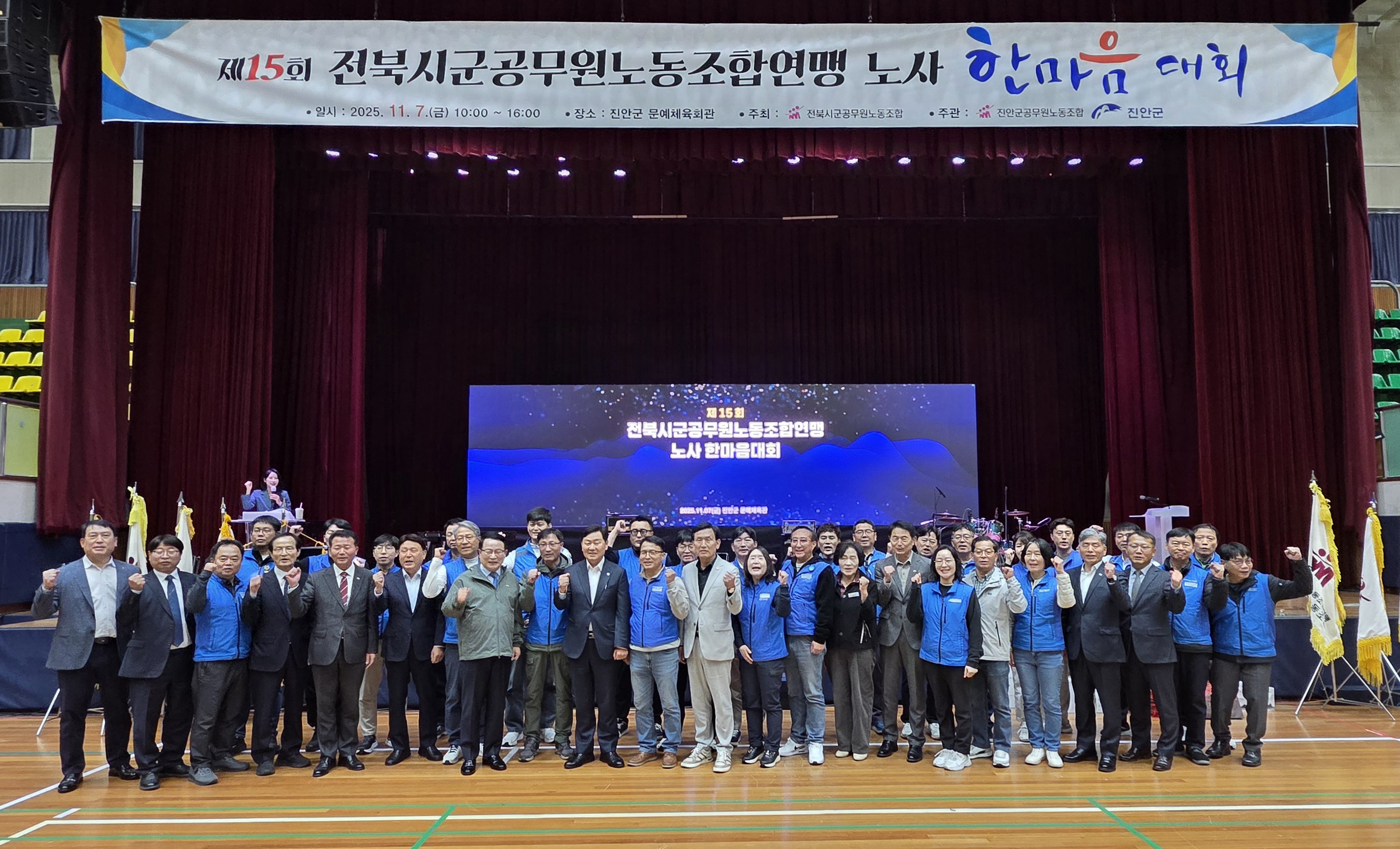 [진안=뉴전북] 전북시군공무원노동조합연맹(위원장 이재선)이 주최하고 진안군과 진안군공무원노동조합이 주관한 제15회 전북연맹노사한마음 대회가 7일(금) 진안군 문예체육회관에서 성황리에 개최됐다.