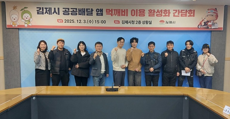 [김제=뉴전북]김제시는 지난 3일 시청 상황실에서 공공배달앱 먹깨비’ 이용 활성화 방안 논의를 위해 운영사가맹점주배달업체시 관계자가 참석한 가운데 운영 현황을 공유하고 현장 의견을 청취하는 간담회를 개최했다고 밝혔다.
