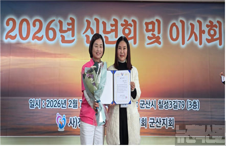 [사회=뉴전북] (사)세계여성평화그룹(IWPG) 글로벌12국 군산지부(지부장 황설희)는 지난 7일 전북특별자치도 군산시 산북동에서 열린 ‘전북장애인정보문화협회 군산지회 2026년 신년회 및 이사회’에서 감사패와 표창장(한윤정 경영지원부장)을 수상했다.
