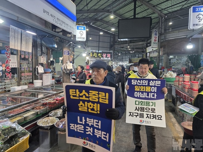 [정읍=뉴전북] 정읍시가 설 명절을 앞두고 10일 샘고을시장에서 시민들과 함께하는 ‘탄소중립 실천 및 1회용품 줄이기’ 캠페인을 전개했다.